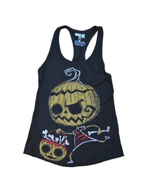 Original hand-drawn artwork of Akumu Ink's trick or treating pumpkin character collecting the bones of his victims for Halloween.