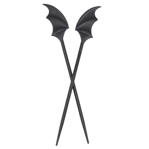 Get your bats nest under control with the Batwing Hair Sticks by Kreepsville. This vamp hair accessory has a matte black finish and is made with a durable metal to hold up your luscious locks all day long. Plus, the bat wing design is sure to give your hair a gravity defying look!