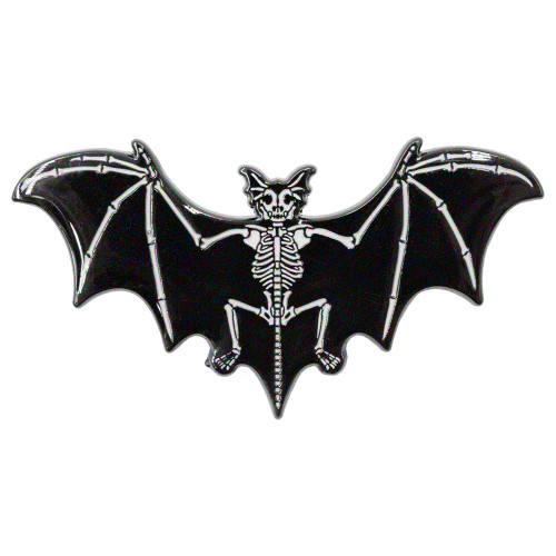 Kreepsville's Skeleton Bat enamel pin features a glow-in-the-dark bat skeleton crafted from durable alloy metal.