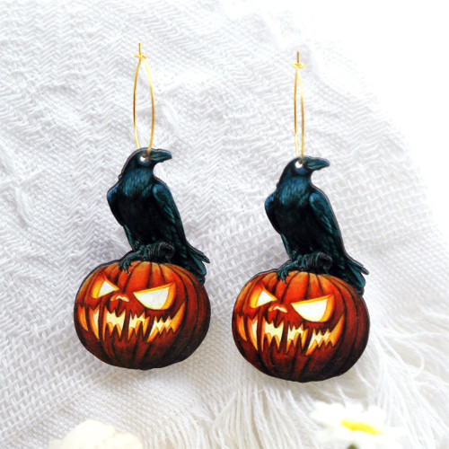 Crafted from high-quality wood, these earrings showcase the intricate silhouette of a raven in flight, adding an element of mystery and allure. The carefully chosen color palette reflects the rich hues of autumn leaves and the enchanting glow of a harvest moon, creating a visual symphony that celebrates the beauty of this magical time of year. The lightweight design ensures comfortable wear, allowing you to effortlessly incorporate a touch of seasonal elegance into your everyday style.