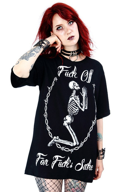 The desperate prayer of a kneeling skeleton, who prays in strong words for his peace of mind. We are sure that sometimes you are in the same state, when you are fed up with everything and everyone; this t-shirt should solve some of your problems ;)